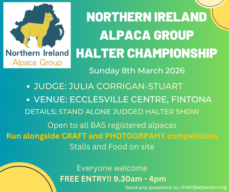 Our 2026 NIAG Show will be held on Sunday 8th March in Ecclesville Centre, Fintona.
